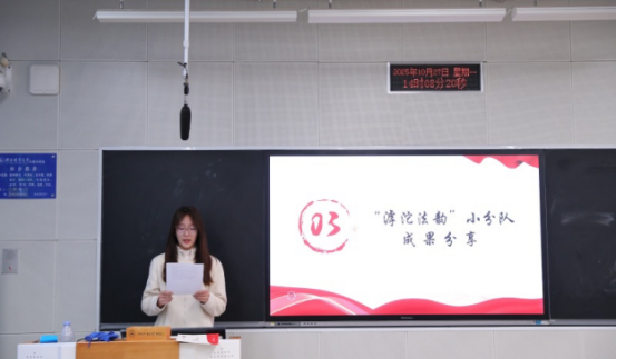 “青马笃行”重点小分队成员刘佳成分享了团队师生前往秦皇岛市的调研经历。该小分队以“城乡高龄老人居家养老服务体系调研与志愿服务实践”为核心课题,聚焦城乡服务差异、政策贯彻落实等问题,以青春力量推动养老服务体系高质量发展,在躬身实践中感悟法治为民的深刻内涵,得到了河北新闻网、河北网络广播电视台等十余家官方媒体报道以及秦皇岛市民政局的感谢信。从政策宣讲到法律援助,从需求调研到服务落地,小分队以实际行动诠释了“不忘初心、牢记使命”的青年担当。